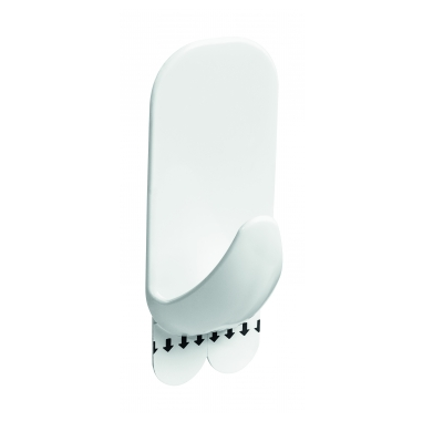 Para removê-lo levante a lingueta, localizada abaixo do gancho. Com uma das mãos segure o gancho pelas laterais e com a outra puxe lentamente a lingueta para baixo paralelo à parede. Estique a fita pelo menos 30 cm, sem formar ângulo com a parede, até que o adesivo se solte.